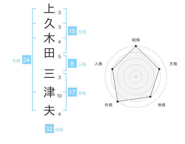 上久木田 三津夫さんを姓名の画数から五運を鑑定