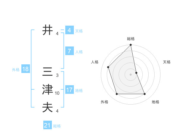 井 三津夫さんの総格は21画の5点!