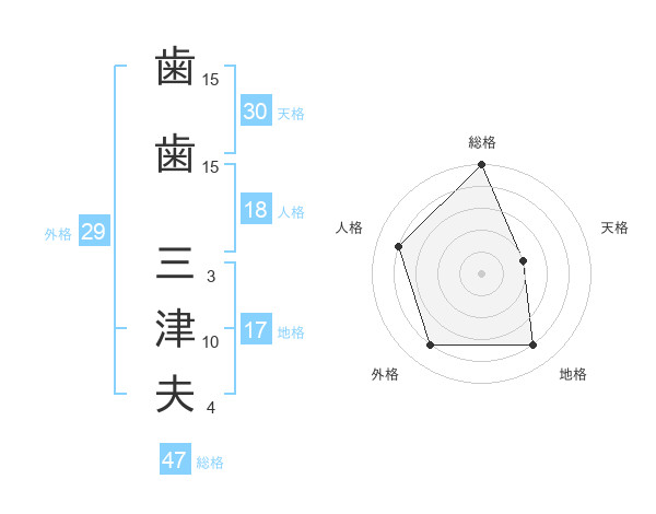 歯歯 三津夫さんを姓名の画数から五運を鑑定