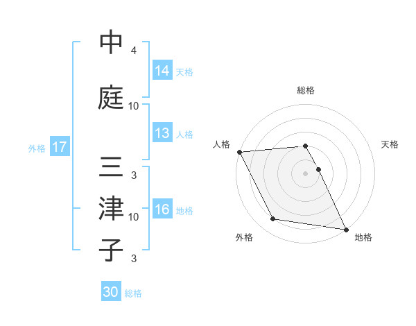 中庭 三津子さんを姓名の画数から五運を鑑定