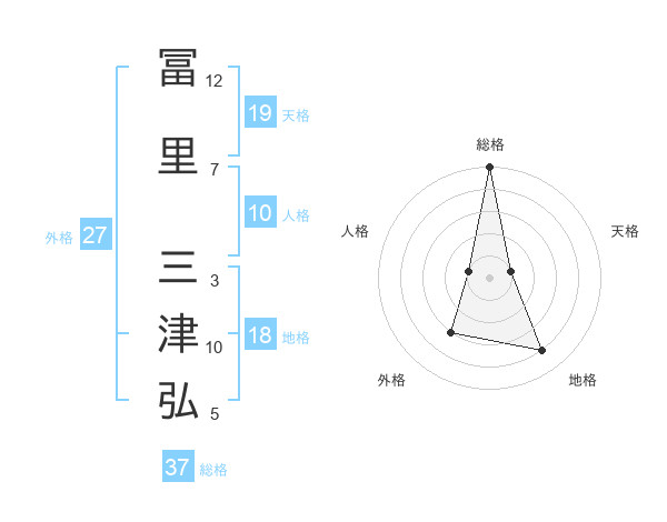 冨里 三津弘さんを姓名の画数から五運を鑑定