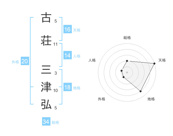 古荘 三津弘さんを姓名の画数から五運を鑑定