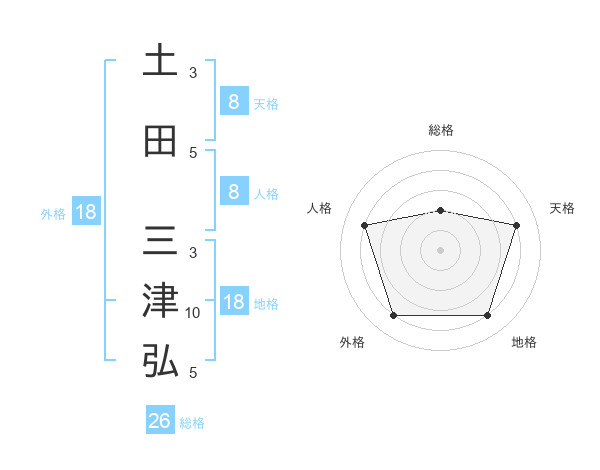 土田 三津弘さんを姓名の画数から五運を鑑定