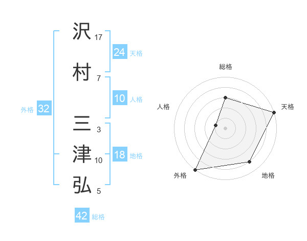沢村 三津弘さんを姓名の画数から五運を鑑定
