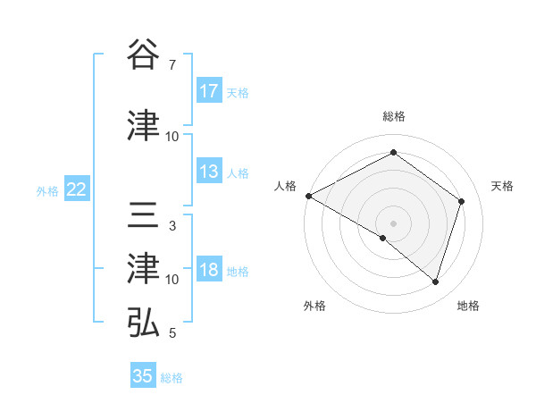 谷津 三津弘さんを姓名の画数から五運を鑑定