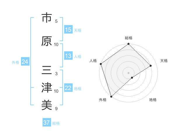 市原 三津美さんの総格は37画の5点!