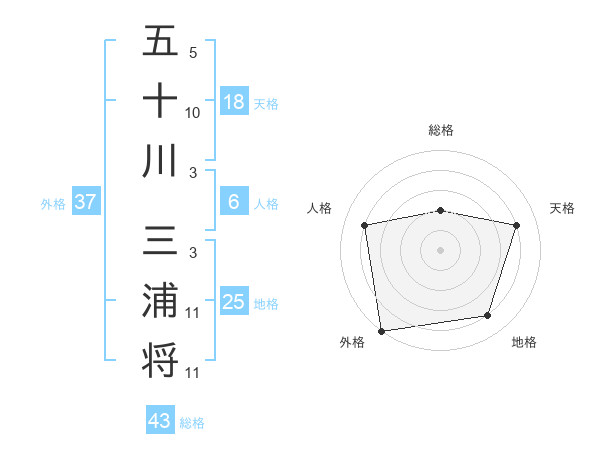 五十川 三浦将さんを姓名の画数から五運を鑑定