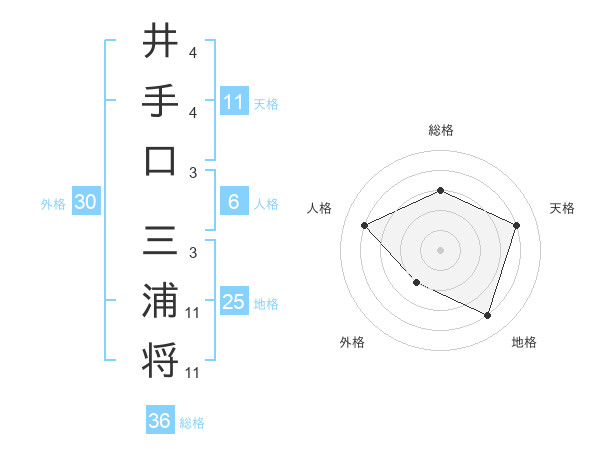 井手口 三浦将さんの天格は11画の4点!