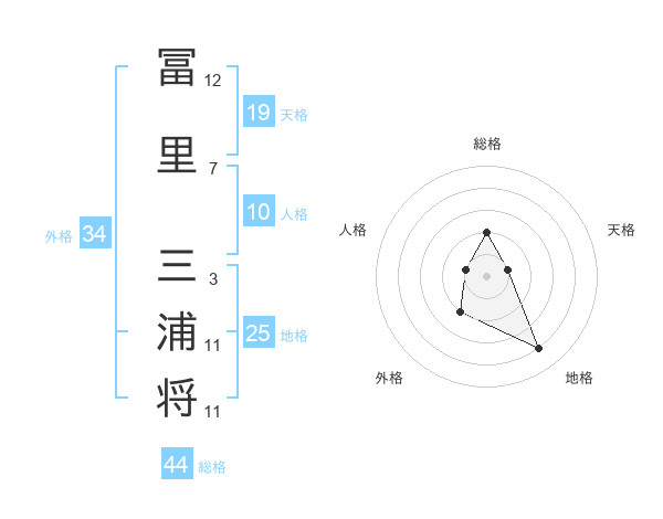 冨里 三浦将さんを姓名の画数から五運を鑑定