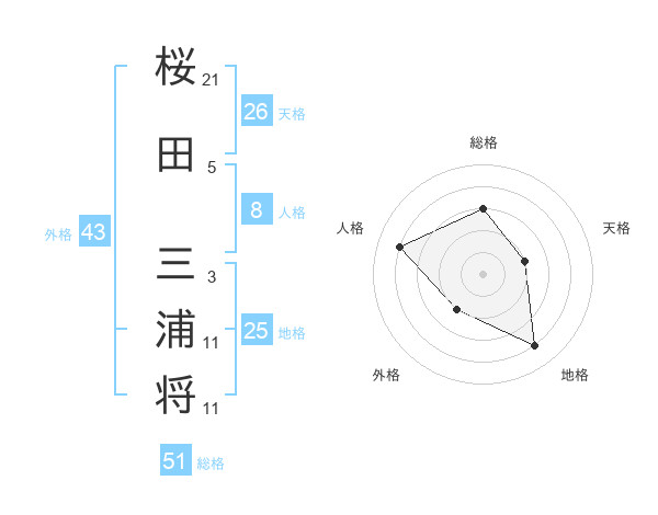 桜田 三浦将さんを姓名の画数から五運を鑑定