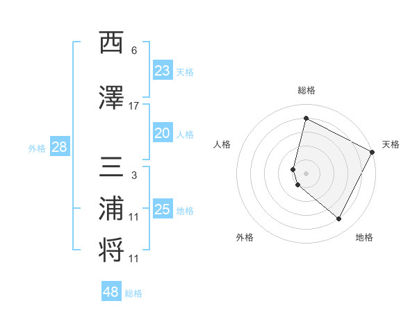 西澤 三浦将さんの総格は48画の4点!