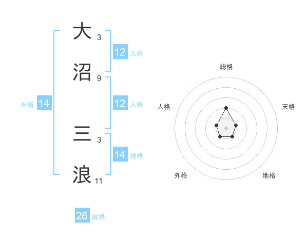 大沼 三浪さんを姓名の画数から五運を鑑定