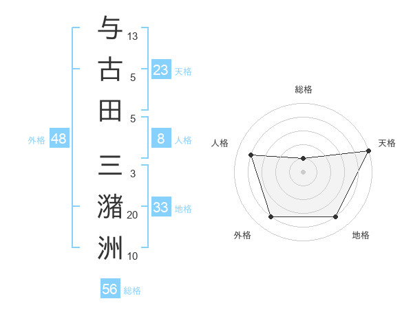 与古田 三潴洲さんを姓名の画数から五運を鑑定