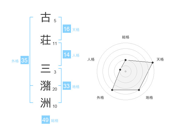 古荘 三潴洲さんを姓名の画数から五運を鑑定