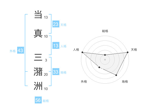当真 三潴洲さんを姓名の画数から五運を鑑定
