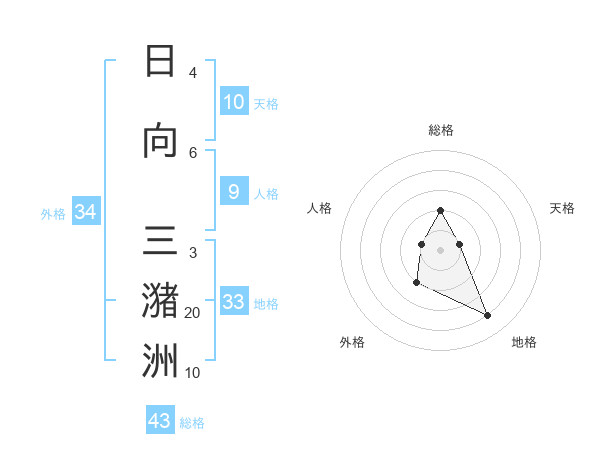 日向 三潴洲さんの総格は43画の2点!