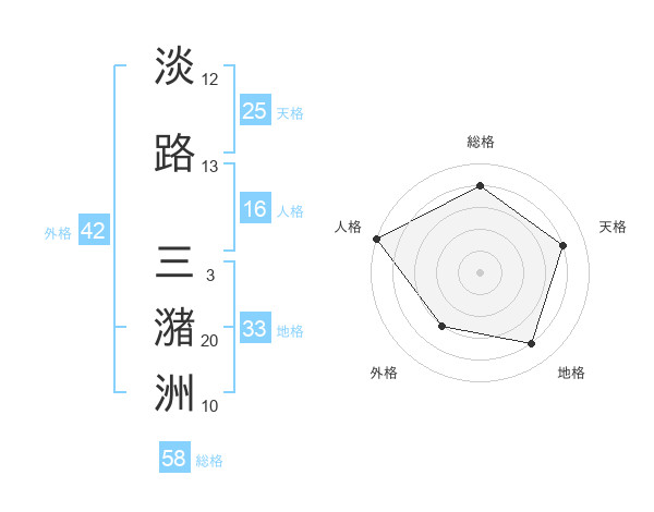 淡路 三潴洲さんの総格は58画の4点!