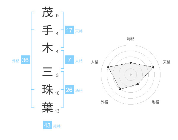 茂手木 三珠葉さんを姓名の画数から五運を鑑定