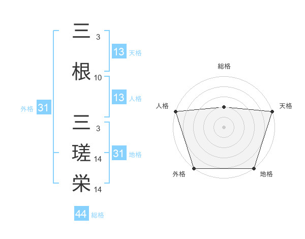 三根 三瑳栄さんの外格は31画の5点!