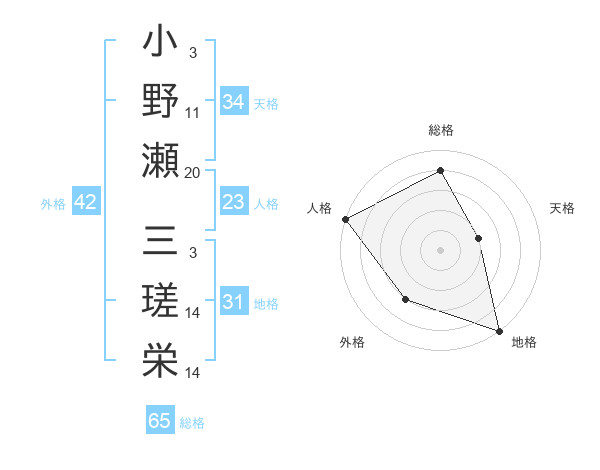 小野瀬 三瑳栄さんの総格は65画の4点!