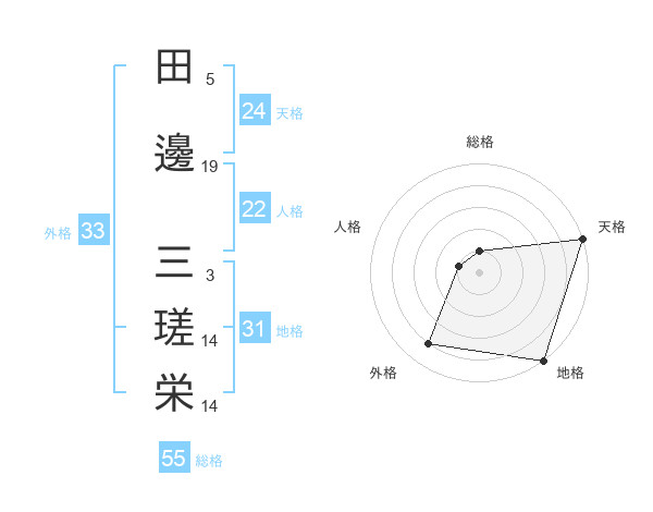 田邊 三瑳栄さんを姓名の画数から五運を鑑定