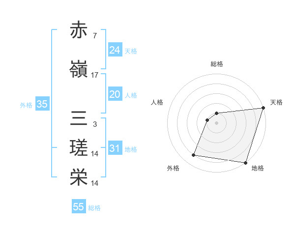 赤嶺 三瑳栄さんの外格は35画の4点!