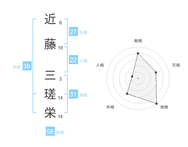 近藤 三瑳栄さんを姓名の画数から五運を鑑定