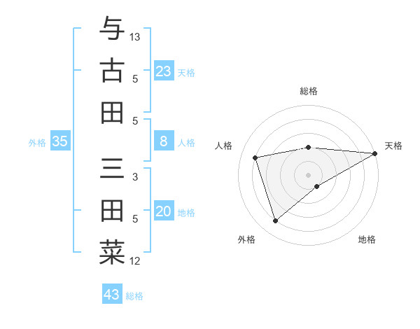与古田 三田菜さんを姓名の画数から五運を鑑定