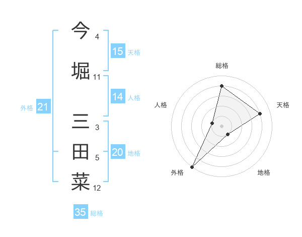 今堀 三田菜さんを姓名の画数から五運を鑑定