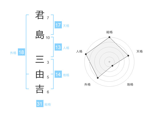 君島 三由吉さんを姓名の画数から五運を鑑定
