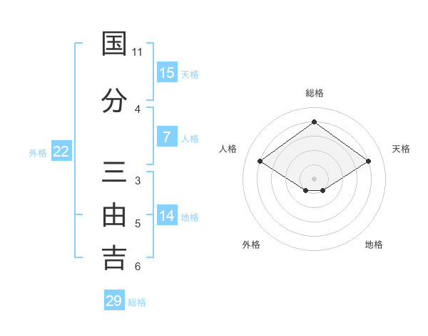 国分 三由吉さんの総格は29画の4点