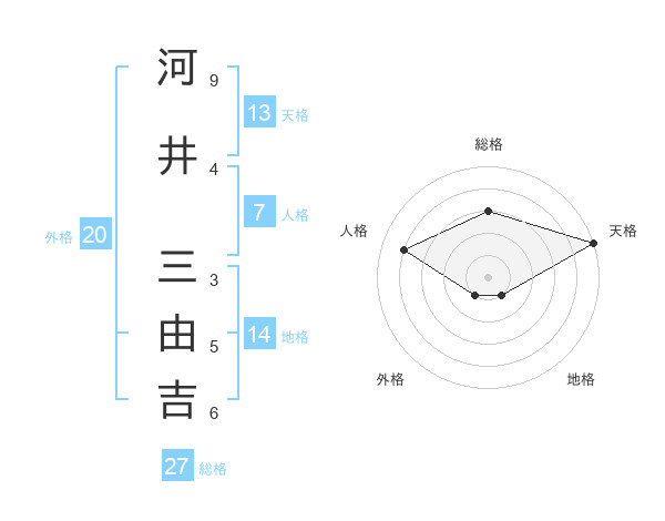 河井 三由吉さんの総格は27画の3点!