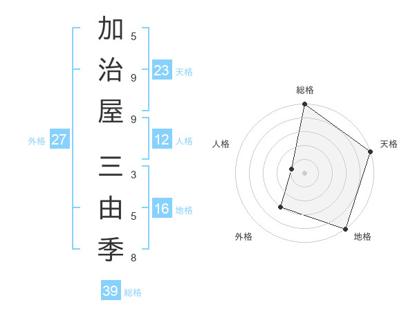 加治屋 三由季さんの総格は39画の5点