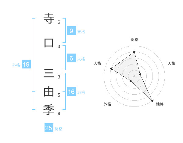 寺口 三由季さんの総格は25画の4点!