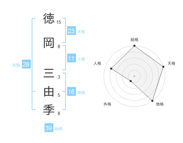 徳岡 三由季さんを姓名の画数から五運を鑑定