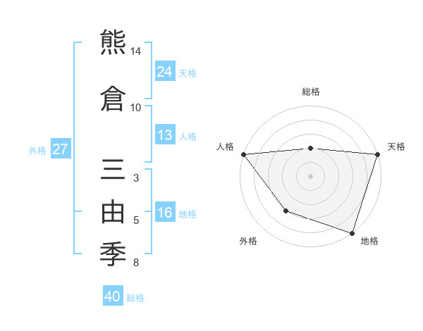 熊倉 三由季さんの総格は40画の2点!
