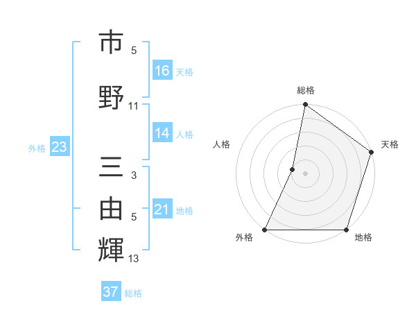 市野 三由輝さんを姓名の画数から五運を鑑定