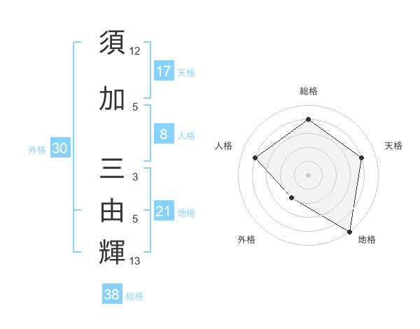 須加 三由輝さんの総格は38画の4点!