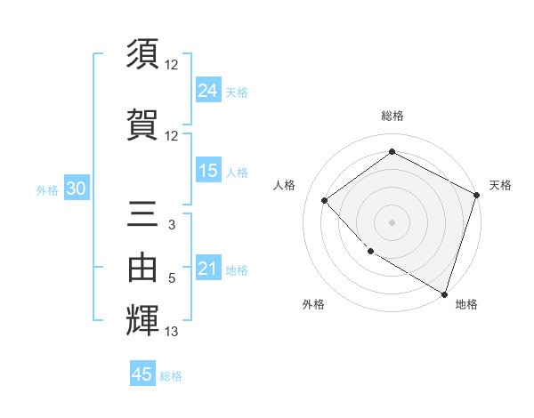 須賀 三由輝さんの総格は45画の4点