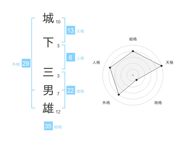 城下 三男雄さんの総格は35画の4点!