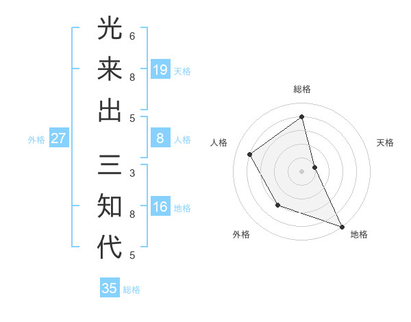 光来出 三知代さんを姓名の画数から五運を鑑定