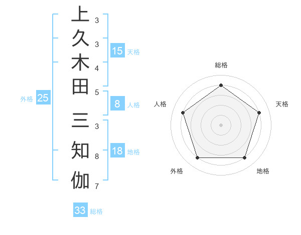 上久木田 三知伽さんを姓名の画数から五運を鑑定