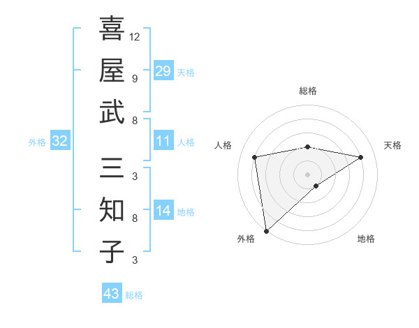 喜屋武 三知子さんを姓名の画数から五運を鑑定