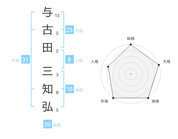 与古田 三知弘さんを姓名の画数から五運を鑑定