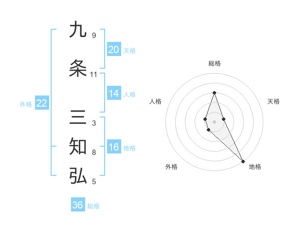 九条 三知弘さんを姓名の画数から五運を鑑定