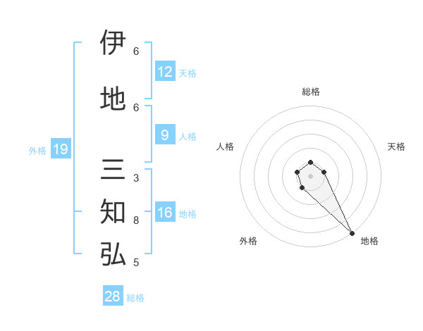 伊地 三知弘さんを姓名の画数から五運を鑑定