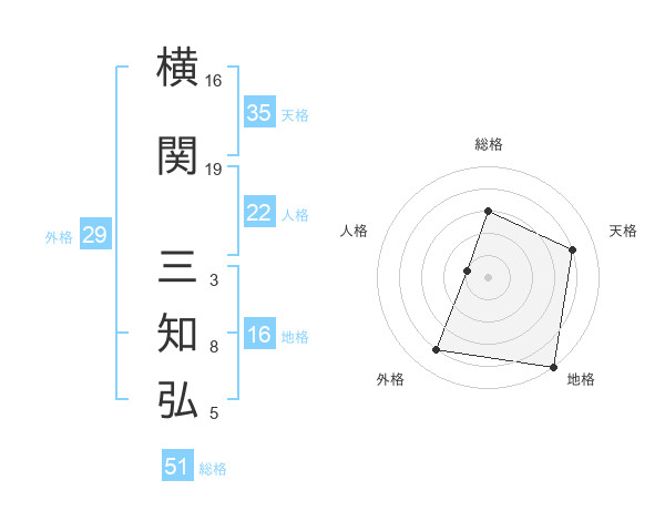 横関 三知弘さんを姓名の画数から五運を鑑定