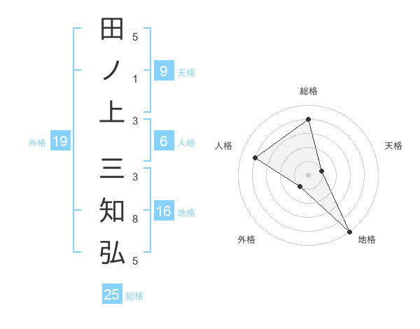 田ノ上 三知弘さんを姓名の画数から五運を鑑定