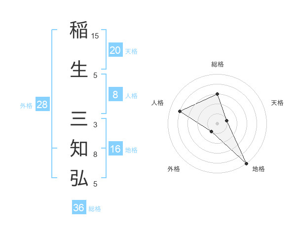 稲生 三知弘さんの天格は20画の1点!