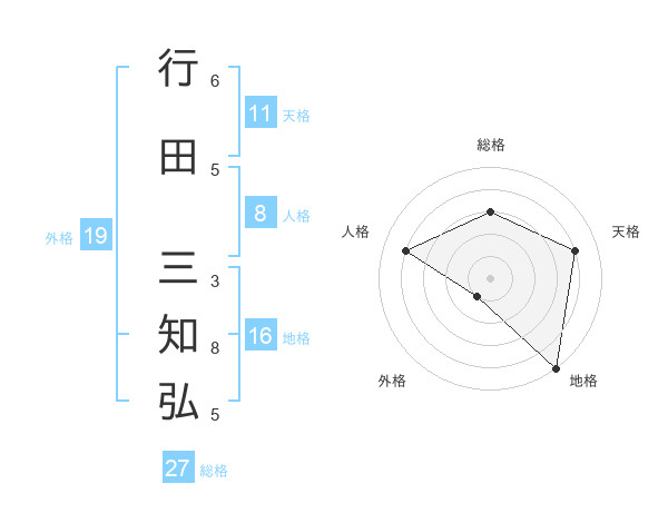 行田 三知弘さんの総格は27画の3点!